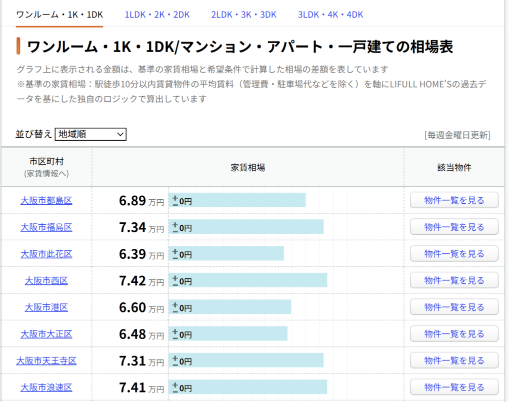 分からない方はHOMESの家賃相場ページで確認してみよう。